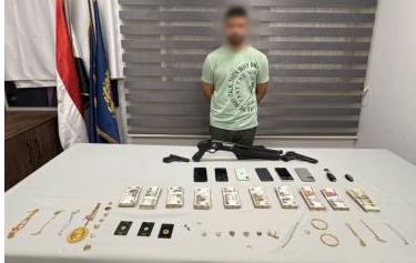 كما تم ضبط عاطل له معلومات جنائية بدائرة قسم شرطة مدينة نصر أول، لقيامه بسرقة مشغولات ذهبية من إحدى السيدات، وعُثر بحوزته على بندقية خرطوش، وطبنجة صوت معدلة، وطبنجة صوت أخرى، ومبلغ مالي، والمشغولات الذهبية المستولى عليها.