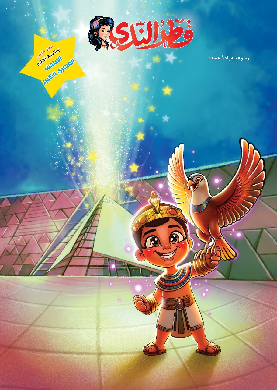 وتقدم مجلة قطر الندى بوستر هدية للأطفال على صفحتين، يعبر عن المتحف المصري الكبير، رسمته الفنانة "ميادة مسعد"، وفيه نجد الصقر حورس وهو رمز من رموز الحضارة المصرية القديمة.