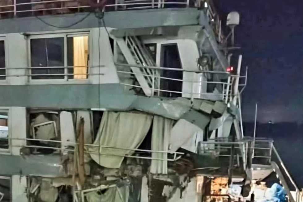 تحطم جزئي في مقدمة الباخرة