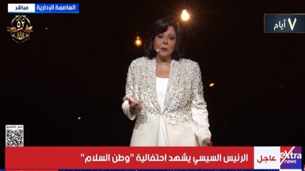 قالت الفنانة والإعلامية إسعاد يونس خلال كلمتها في احتفالية «وطن السلام» بالعاصمة الإدارية الجديدة، بأسلوبها المميز والعفوي: «ما هو لما يبقى وزنك تاريخ وجغرافيا وحضارة وعِلم وأدب وفن وشِعر وموسيقى ووعي، يبقى القدر اختارك تكون كبير، والكبير دايمًا قدره المسؤولية».