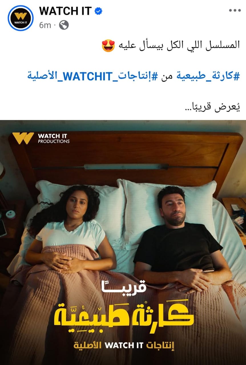 أعلنت منذ قليل منصة WATCH IT عن عودة و اقتراب مسلسل “ كارثة طبيعية” للفنان محمد سلام وذلك تزامنًا مع ظهور الأخير خلال الساعات الأخيرة فى أوبريت “ وطن السلام ”، و الذي شهد حضوره تفاعلًا جماهيرًا خلال الاحتفالية وعبر مواقع التواصل الاجتماعي من جهوره و النجوم .