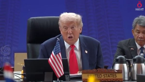 ألقى الرئيس الأمريكي دونالد ترامب كلمة أمام قادة دول قمة آسيا، أكد فيها أن الولايات المتحدة تعيش ما وصفه بـ«الحقبة الذهبية»، مشددًا على التزام بلاده بدعم الاستقرار والازدهار في منطقة جنوب شرق آسيا والمحيط الهادئ، وتعزيز التعاون الاقتصادي والتكنولوجي مع دول المنطقة.