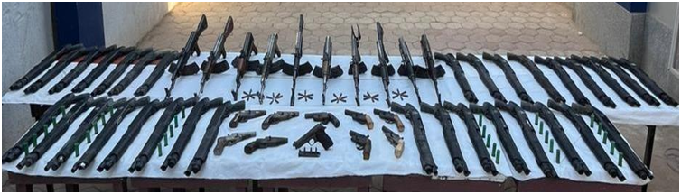 كما تم ضبط باقي أفراد الشبكة الإجرامية، وعُثر بحوزتهم على كمية ضخمة من المواد المخدرة المتنوعة، تشمل الحشيش، والشابو، والآيس، والهروين، والبنغو، والبودرة، والهايدرو، والإستروكس، والشادو، بالإضافة إلى 67 قطعة سلاح ناري، من بينها رشاش جرينوف، 15 بندقية آلية، 36 بندقية خرطوش، 14 فرد خرطوش، وطبنجة.