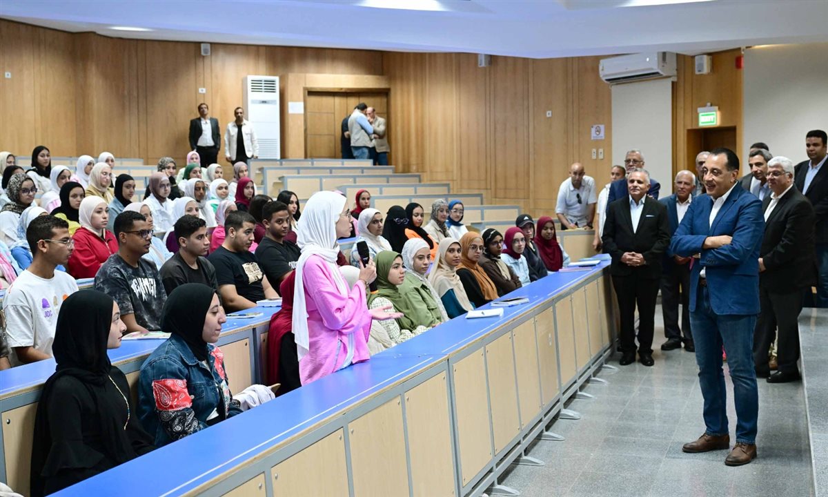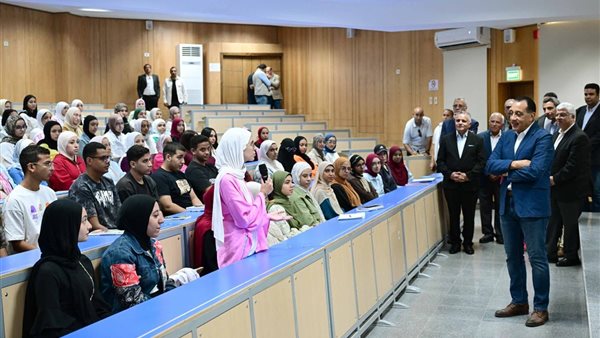وخلال الجولة، تفقد رئيس مجلس الوزراء مدرج كلية العلوم؛ حيث تابع جانبًا من محاضرة في الجيولوجيا لطلاب الكلية؛ وأجرى رئيس مجلس الوزراء حوارا مع عدد كبير من الطلاب، معبرا عن سعادته بتواجده اليوم مع شباب مصر في أول عام دراسي بهذه الجامعة الناشئة، قائلا: أنتم المستقبل لأننا نعمل من أجل المستقبل، فهدف الدولة هو تخريج طلاب أكفاء يواكبون متطلبات المستقبل، وقادرون على التكيف مع أحدث التقنيات التكنولوجية في مختلف المجالات.