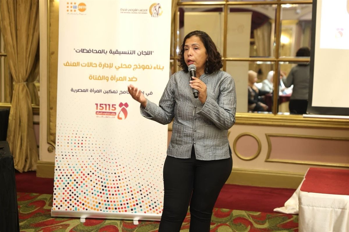 فيما استعرضت الأستاذة أمل عبد المنعم أشكال العنف ضد المرأة والفتاة ودور واختصاصات مكتب شكاوى المرأة وخطه المختصر 15115 وآليات الإبلاغ والمساندة ونظام التنسيق الوطني لقضايا العنف ضد المرأة.