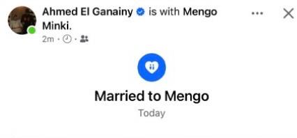 بعد مرور العديد من الأيام على إعلان منة شلبي زواجها من المنتج أحمد الجنايني، غير أحمد الجنايني حالته الاجتماعية على موقع التواصل الاجتماعي فيسبوك، حيث جعلها متزوج من الفنانة منة شلبي.