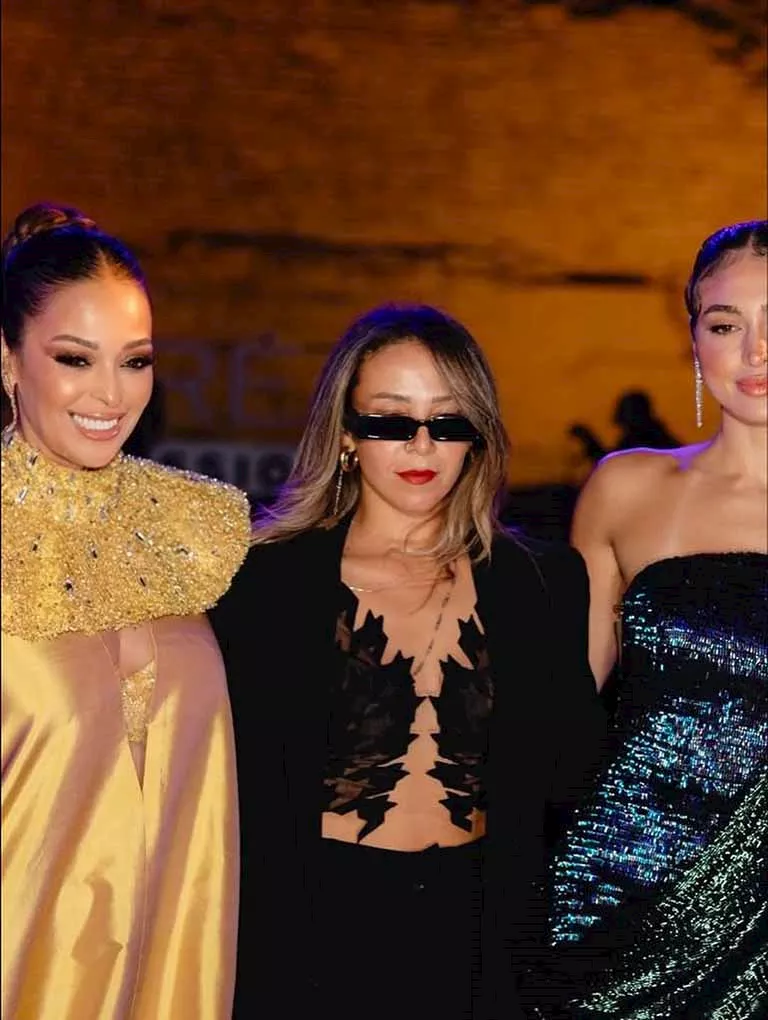 وارتدت داليا بفستان طويل باللون الذهبي مزينا بتطريزات من الأعلى، من تصميم "temraza".
