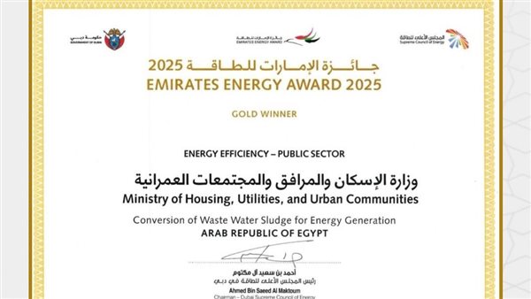 الإسكان: الفوز بجائزة الإمارات للطاقة يؤكد نجاح الدولة في تعظيم الاستفادة من الموارد وتحقيق رؤية مصر 2030
