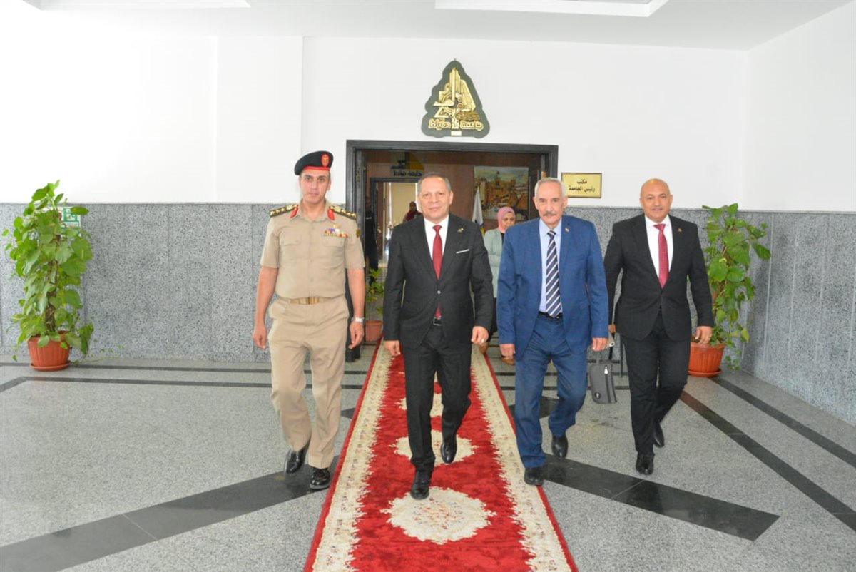 على هامش احتفالية جامعة دمياط بالذكرى الثانية والخمسين لانتصارات أكتوبر المجيدة، تفقد الأستاذ الدكتور حمدان ربيع المتولي رئيس الجامعة اليوم الثلاثاء الثامن والعشرين من أكتوبر لعام ألفين وخمسة وعشرين المعرض الفني الذي أقيم بهذه المناسبة الوطنية العزيزة، وذلك بحضور اللواء أركان حرب الدكتور محمد قشقوش مستشار الأكاديمية العسكرية للدراسات العليا والاستراتيجية ومستشار المجلس المصري للشؤون الخارجية، والدكتور محمد عبده عماشة نائب رئيس الجامعة لشئون التعليم والطلاب، والسيد العميد أركان حرب محمد مصطفى خليفة المستشار العسكري لمحافظة دمياط، وعدد من عمداء الكليات وأعضاء هيئة التدريس والطلاب.