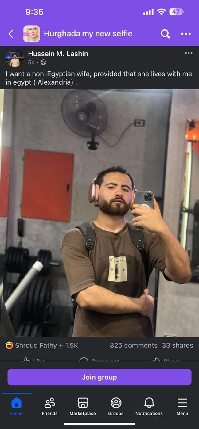 تشهد ساحة التواصل الاجتماعي خلال الساعات الأخير جدلًا واسعًا بعد أن ظهر على موقع Facebook جروب تحت اسم Hurghada my new selfie، يضم مجموعة من شباب مصريين، يعلنون فيه عن رغبتهم في التعرف على فتيات أجنبيات بغرض الزواج.