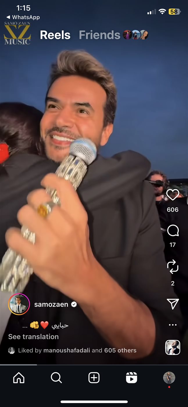 نشر الفنان ساموزين مقطع فيديو من إحدى حفلاته الغنائية، وذلك عبر حسابه الرسمي على موقع تبادل الصور والفيديوهات إنستجرام، ليوضح مدى تفاعل الجمهور معه.