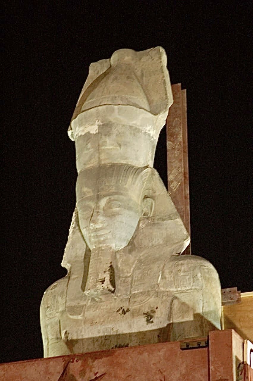 نُحت تمثال رمسيس الثاني من الجرانيت الوردي، ويبلغ طوله 12 مترًا ويزن حوالي 82 طنًا، وقد اكُتشف عام 1820 في معبد ميت رهينة، واشتهر بعظمته العسكرية والفنية، وبناء المعابد والتماثيل، ومن أبرزها معبد أبوسمبل ومعبد الرمسيوم، وقاد عدة حملات عسكرية داخل وخارج حدود مصر، أبرزها معركة قادش الثانية عام 1274 ق.م.، كما أبرم أقدم معاهدة سلام في التاريخ عام 1258 ق.م بين مصر والحيثيين.