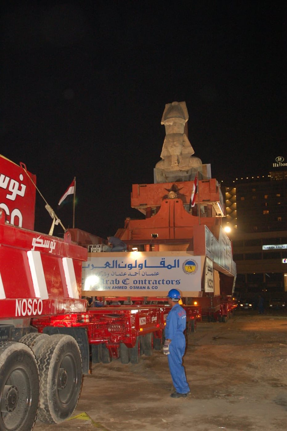 وقطعت رحلة التمثال آنذاك نحو 30 كيلومترًا بمشاركة أكثر من 1000 مهندس وخبير وعامل، وتم تحميله على عربة ضخمة مجهزة بنظام هيدروليكي لضمان ثباته واستقراره أثناء الرحلة، فيما تابعت فرق أخرى كل حركة بدقة لمنع أي أضرار محتملة، وقد وصفت وسائل الإعلام العملية بأنها موكب ملكي حديث، نظير رمزيته الكبيرة وارتباطه بالتاريخ الفرعوني والإنجاز الهندسي الحديث.