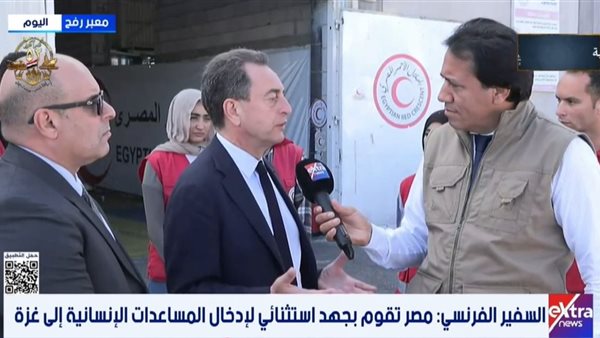 قال إريك شوفالييه السفير الفرنسي لدى القاهرة، إنّ مصر تقوم بجهد استثنائي لإدخال المساعدات الإنسانية إلى غزة ، مثمنا الجهود المصرية المبذولة في احتواء الموقف بقطاع غزة واستقبال المساعدات وإرسالها إلى القطاع وعلاج الفلسطينيين في المستشفيات المصرية.
