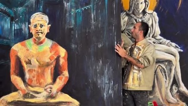 مع افتتاح المتحف شاب مصري يبدع في رسم لوحات للتماثيل المصرية القديمة