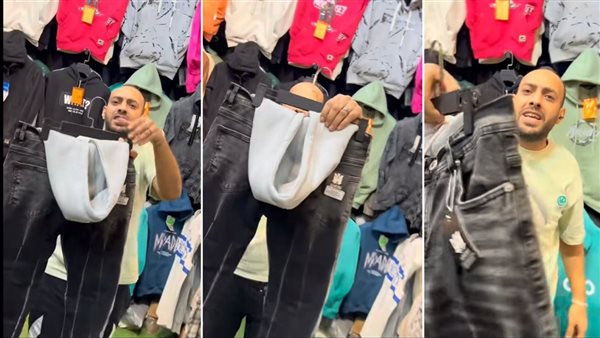 تداول فيديو عبر منصة تيك توك اثار الجدل والتفاعل في عالم الملابس الرجالي، ظهر صاحب المحل وهو يعرض البنطلون ذو التصميم الغريب، معلقًا بكل فخر: أحدث كوليكشن 2026 بنطلون بزنط.