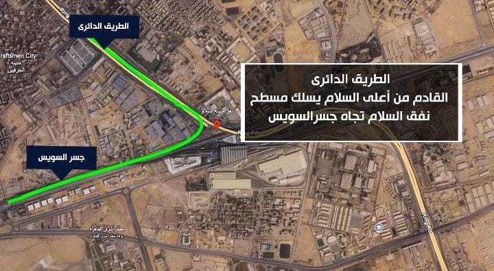 الطريق الدائرى: القادم من أعلى السلام.. يسلك مسطح نفق السلام تجاه جسر السويس.