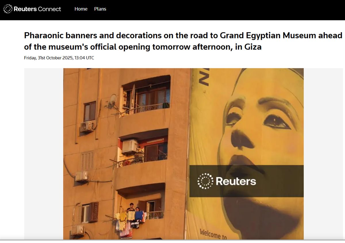 نشرت شبكة رويترز صور للمصريين على شرفاتهم بجوار لافتة تصور رأس الملكة نفرتيتي، أحد أشهر الآثار الفرعونية، معروضة على منزل على طول الطريق السريع المؤدي إلى المتحف المصري الكبير ، قبل الافتتاح الرسمي للمتحف