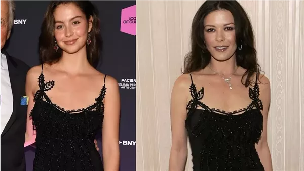 وقبل 20 عاما نسّقته كاثرين زيتا جونز مع حقيبة سوداء صغيرة لامعة وحذاء أسود بكعب عالٍ وارتدت عقد ماسي ناعم، فيما تخلت الابنة خلال أحدث ظهور لها بالفستان؛ عن العقد واكتفت بالأقراط والخواتم البسيطة.