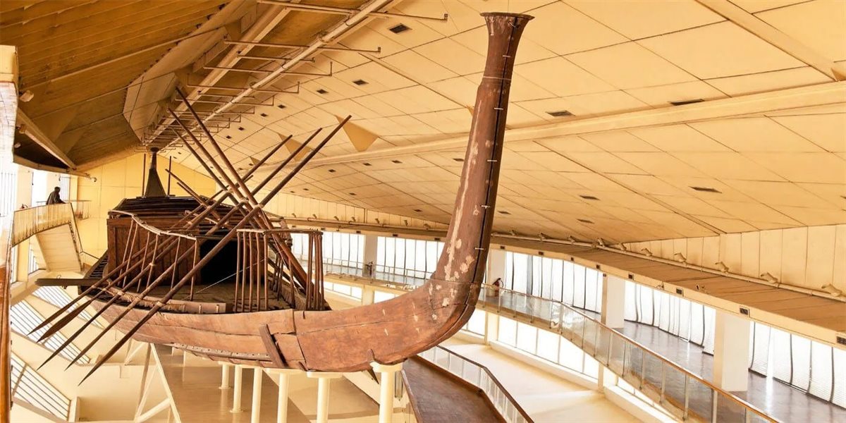 صُمم مبنى منفصل للقوارب الشمسية، التي يعود تاريخها إلى 4600 عام للملك خوفو، وهي إحدى أكبر وأقدم القطع الأثرية الخشبية من العصور القديمة.