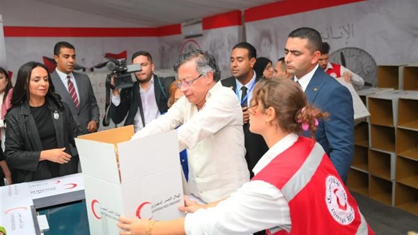 في لقطة إنسانية، وثقت عدسات الكاميرا الرئيس الكولومبي جوستافو بيترو، وهو يساعد فى تعبئة المساعدات المصرية المقدمة لقطاع غزة.
