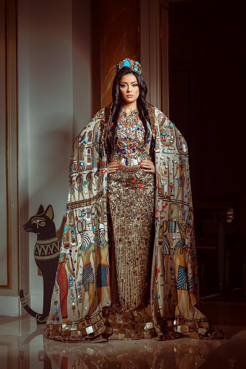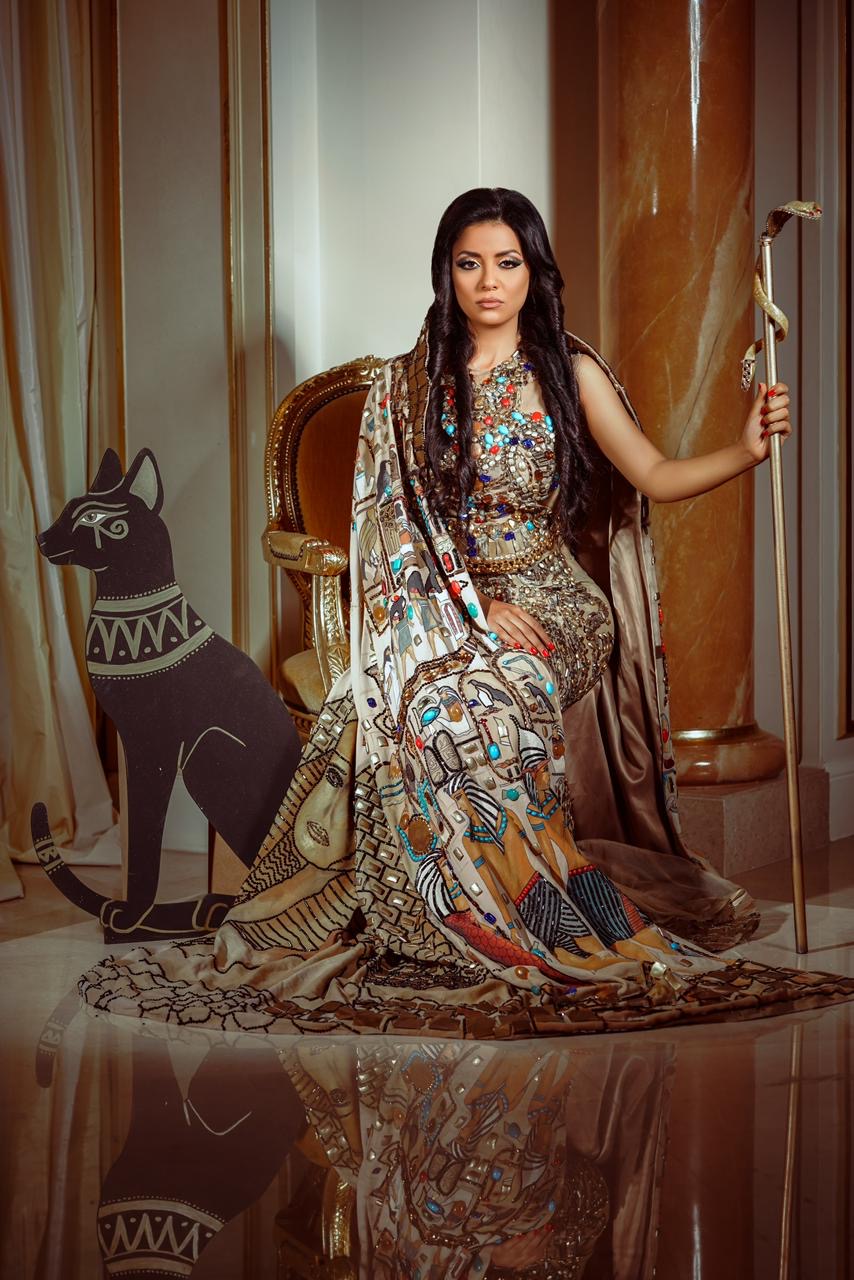 وظهرت سهر في الصور بالزي الفرعوني، وملابس مطرزة من التراث المصري القديم مع أكتاف بقصة الكاب من توقيع مصمم الأزياء هاني البحيري.