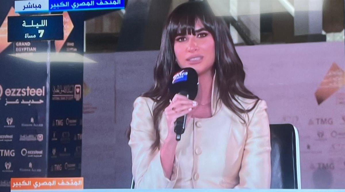خطفت نانسي نور الأنظار من خلال تغطيتها من أمام المتحف المصري الكبير، عبر شاشة «إكسترا نيوز».