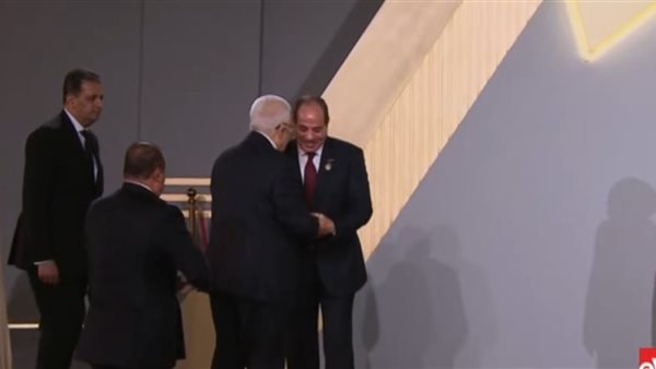تصرف ودي من الرئيس عبد الفتاح السيسي أثناء استقبال الرئيس الفلسطيني محمود عباس، خلال احتفالية افتتاح المتحف المصري الكبير، حيث بادر الرئيس السيسي في استقبال الرئيس الفلسطيني محمود عباس.
