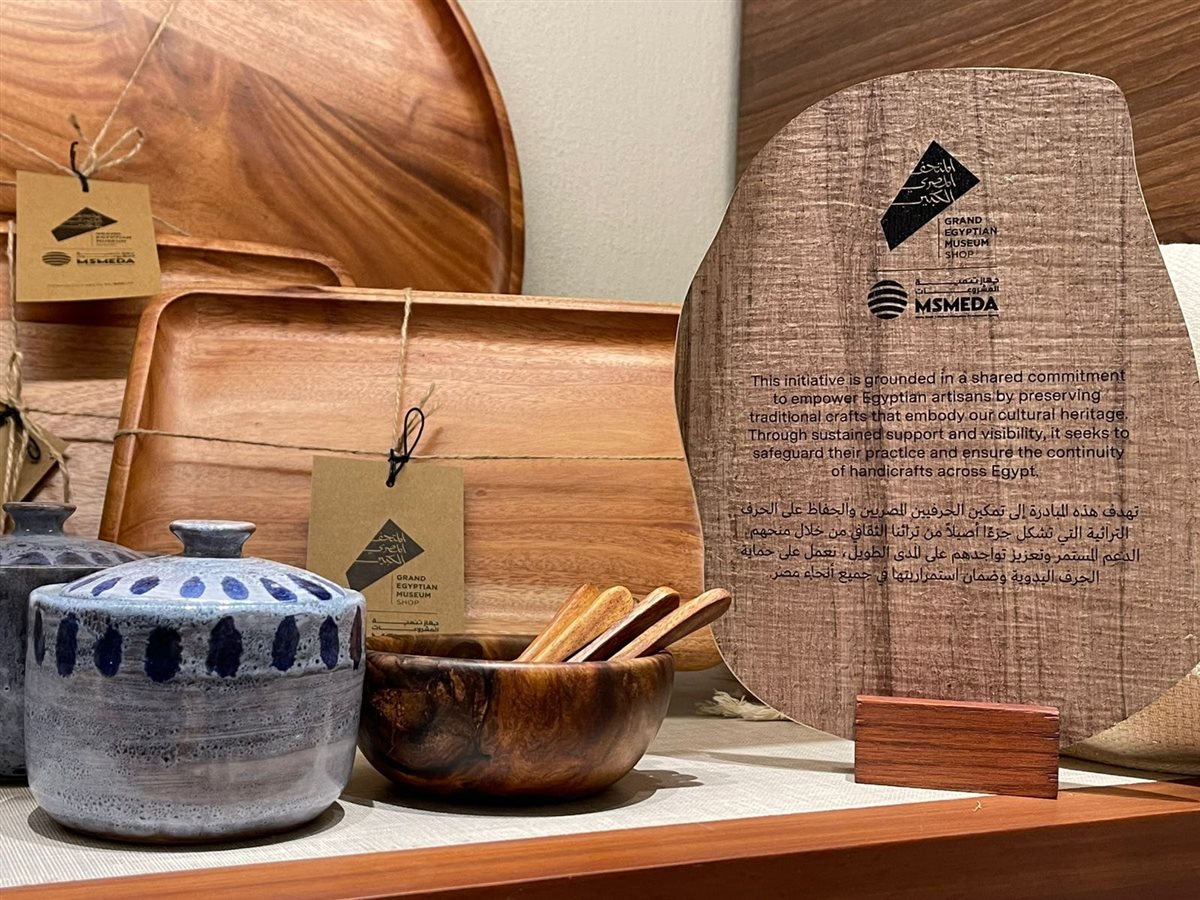 وصرح رحمي بأنه تزامنا مع فعاليات الاحتفال بالأفتتاح العالمي للمتحف المصري الكبير .. قام الجهاز بالتعاون مع بيت الهدايا - المتجر الرسمي للمتحف المصري الكبير .. بعرض مجموعة كبيرة و متميزة من المنتجات التراثية و الفنية الخاصة بالمبدعين و الفنانين من عملاء الجهاز اصحاب المشروعات المتوسطة و الصغيرة و ذلك ضمن فاعليات تنفيذ استراتيجية تطوير الحرف التراثية التي اطلقها الدكتور مصطفي مدبولي رئيس الوزراء و رئيس مجلس ادارة جهاز تنمية المشروعات بهدف تطوير المنتجات التراثية و التسويق لها دوليا من خلال عرضها بالمتجر الرسمي للمتحف المصري الكبير و العديد من التجمعات السياحية بمختلف محافظات الجمهورية.