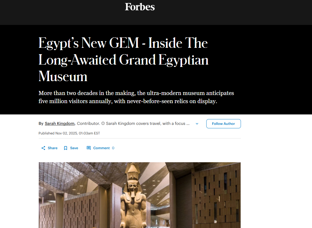 فوربس: المتحف المصرى الكبير أحدث كنوز مصر يحمل أقدم قصصها برسالة عصرية