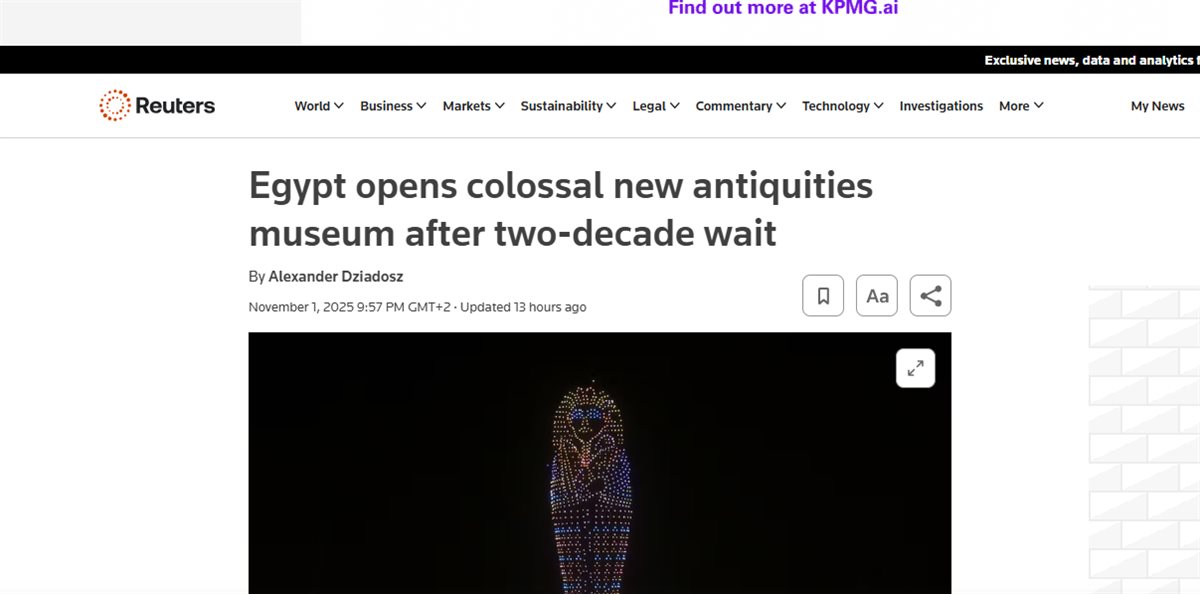 رويترز: مصر تفتتح متحفا ضخما للآثار بعد انتظار دام عقدين من الزمن