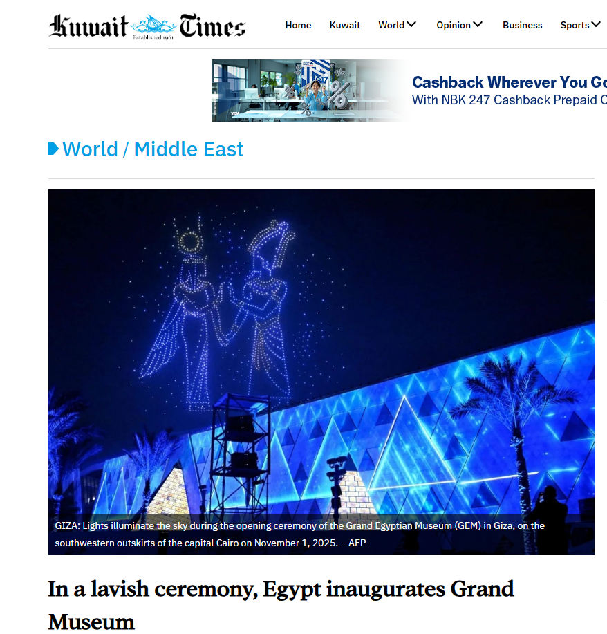 الكويت تايمز: في حفل فخم.. مصر تفتتح رسمياً المتحف الكبير