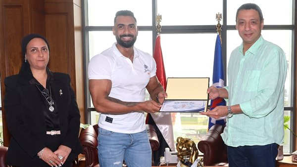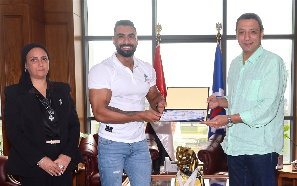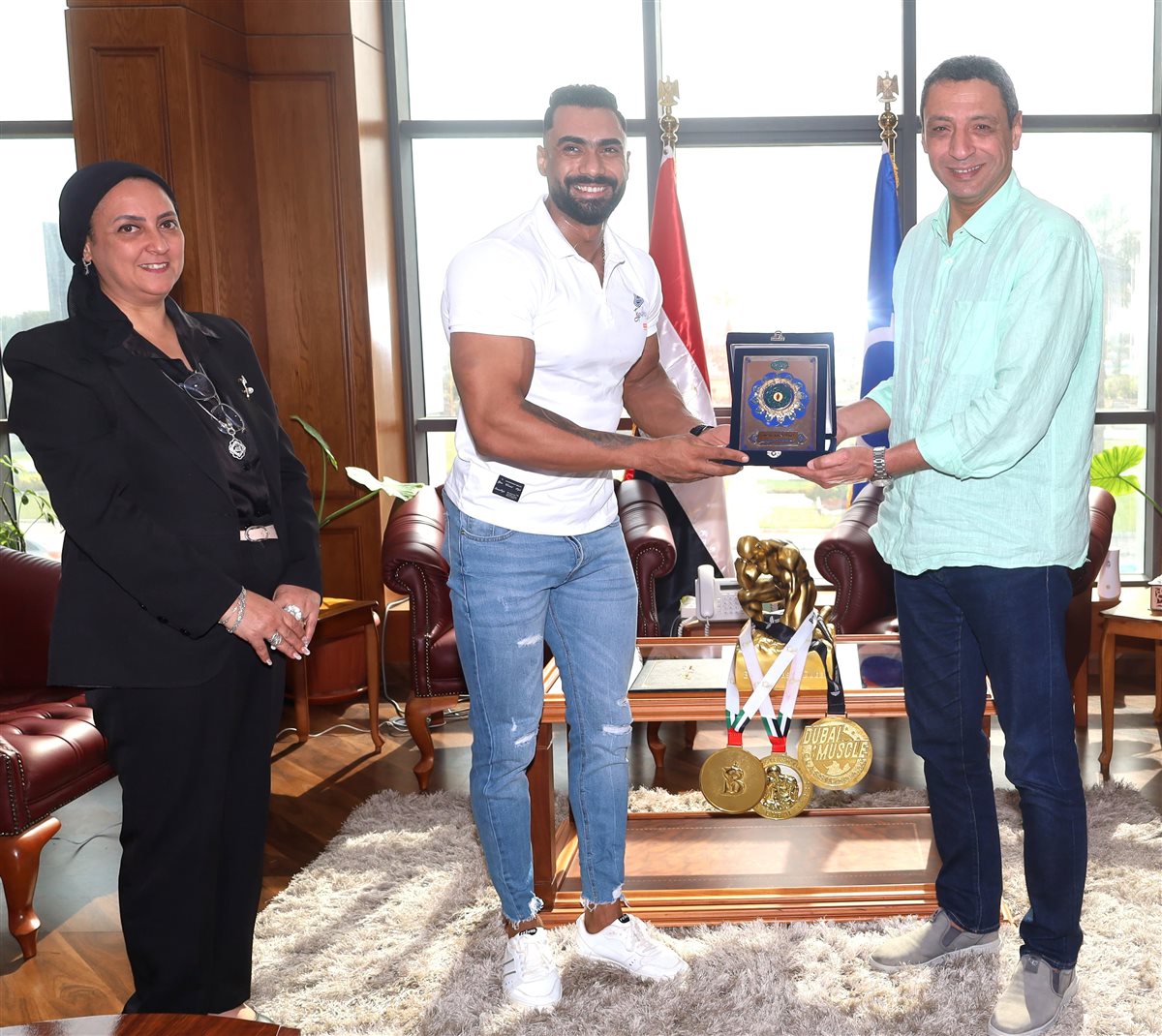 محافظ السويس يكرم مايكل جمال لفوزه بميداليتين ذهبيتين في بطولتين دوليتين