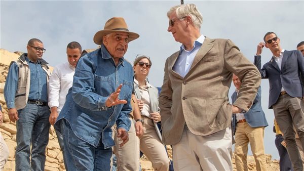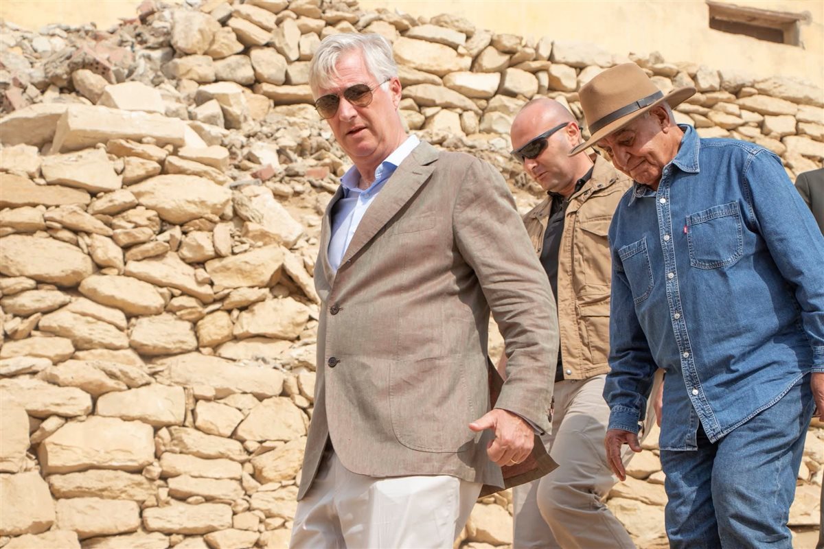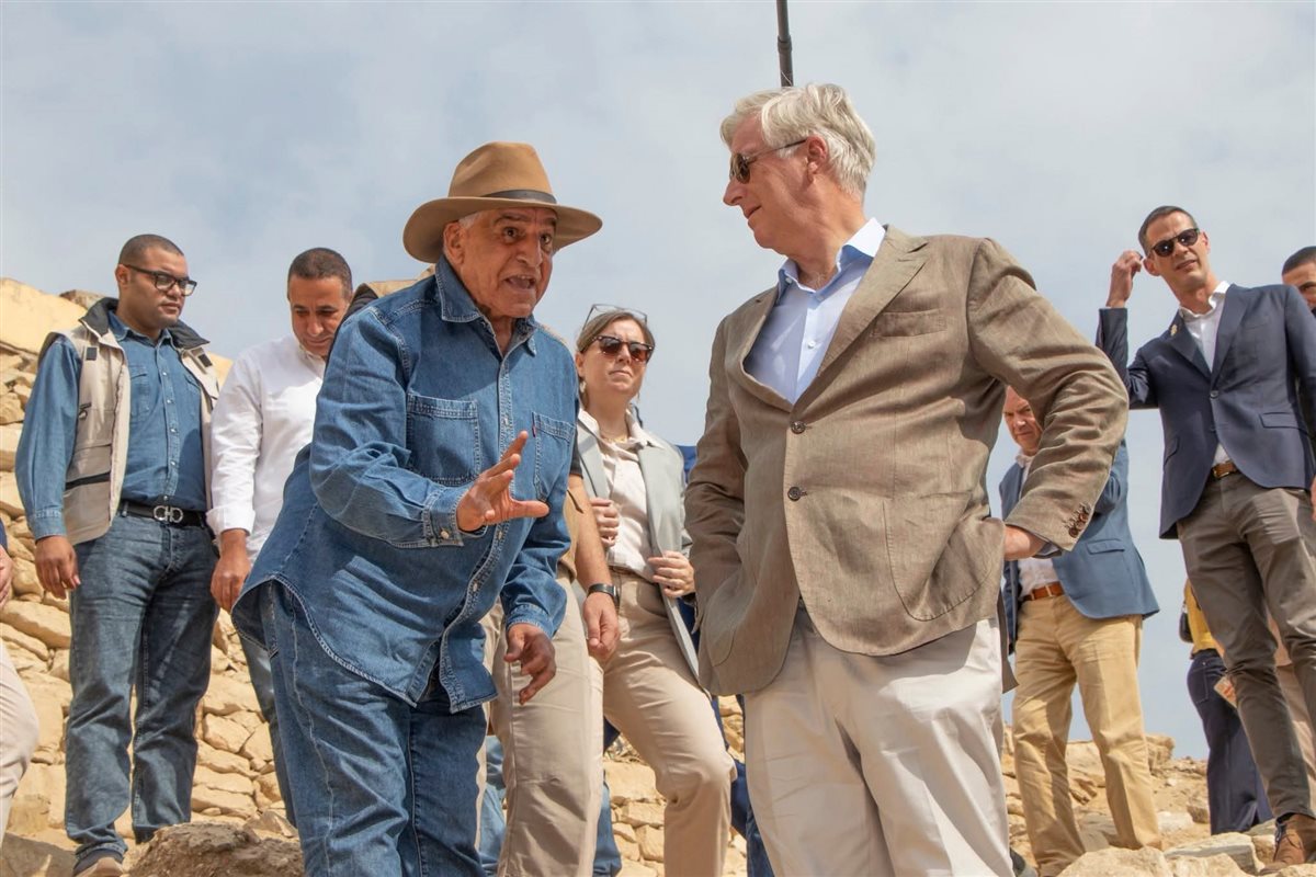 ورافَق الدكتور زاهي حواس الملك فيليب في جولة تفصيلية داخل موقع الحفائر، حيث قدم شرحًا وافيًا لأبرز الإكتشافات الهامة التي أنجزتها البعثة، وجاء ذلك بحضور السفير بارت دي غروف، سفير بلجيكا لدى مصر ووفد رفيع المستوي.