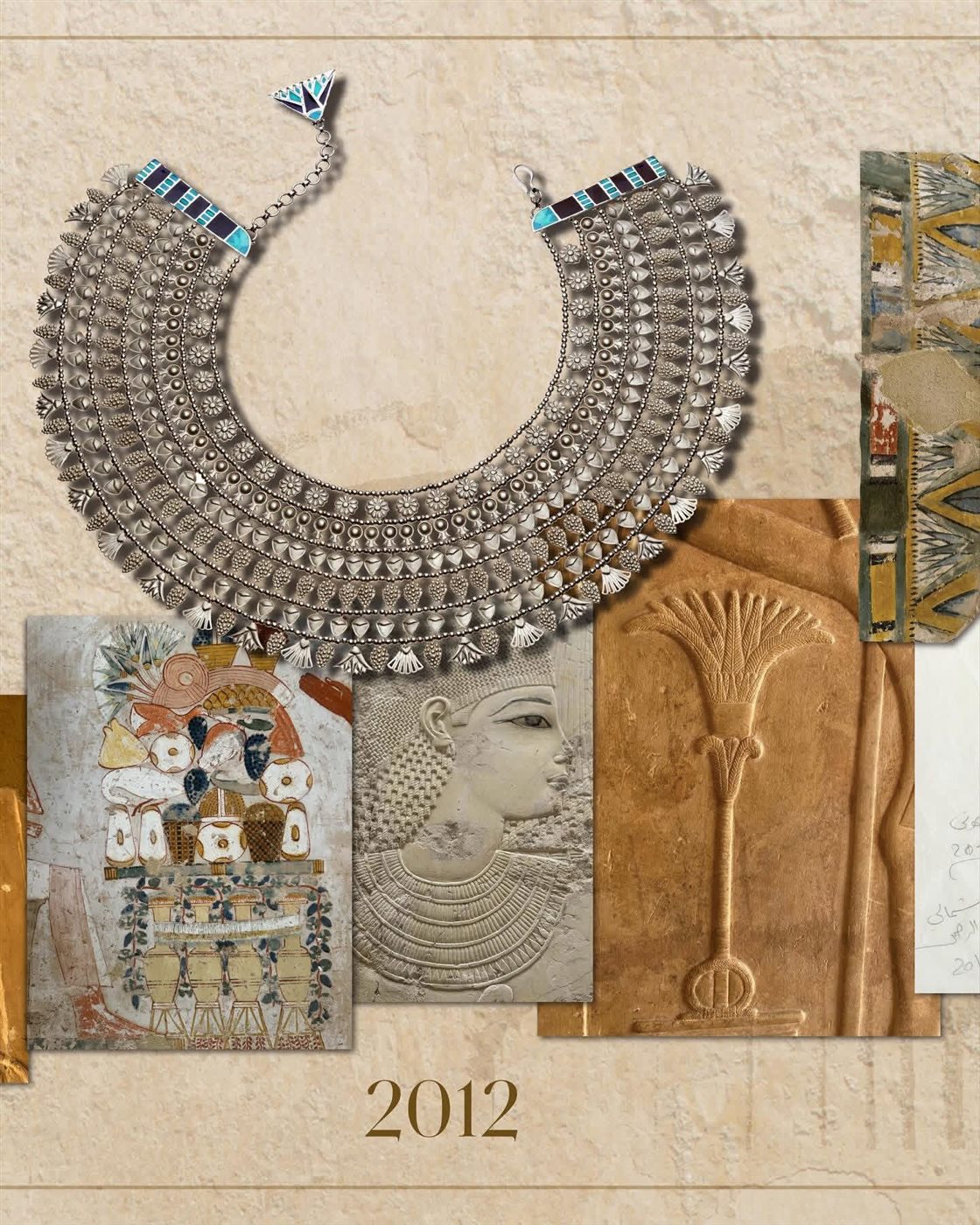 وقالت عزة فهمي: بعد أكثر من ١٢ عامًا من الاستكشاف والدراسة، شعرت عزة فهمي بأنها مستعدة لتصميم قطع مستوحاة من مصر القديمة، بفهمها وحرفيتها اللازمين لتكريمها وإعطائها حقها. في عام ٢٠١٢، كشفت عن أول مجموعة مصرية قديمة لدينا، مستوحاة من تراث يمتد لـ ٧٠٠٠ عام.