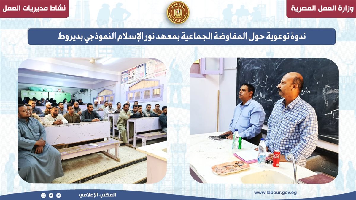 ندوة توعوية حول المفاوضة الجماعية بمعهد نور الإسلام النموذجي بأسيوط .