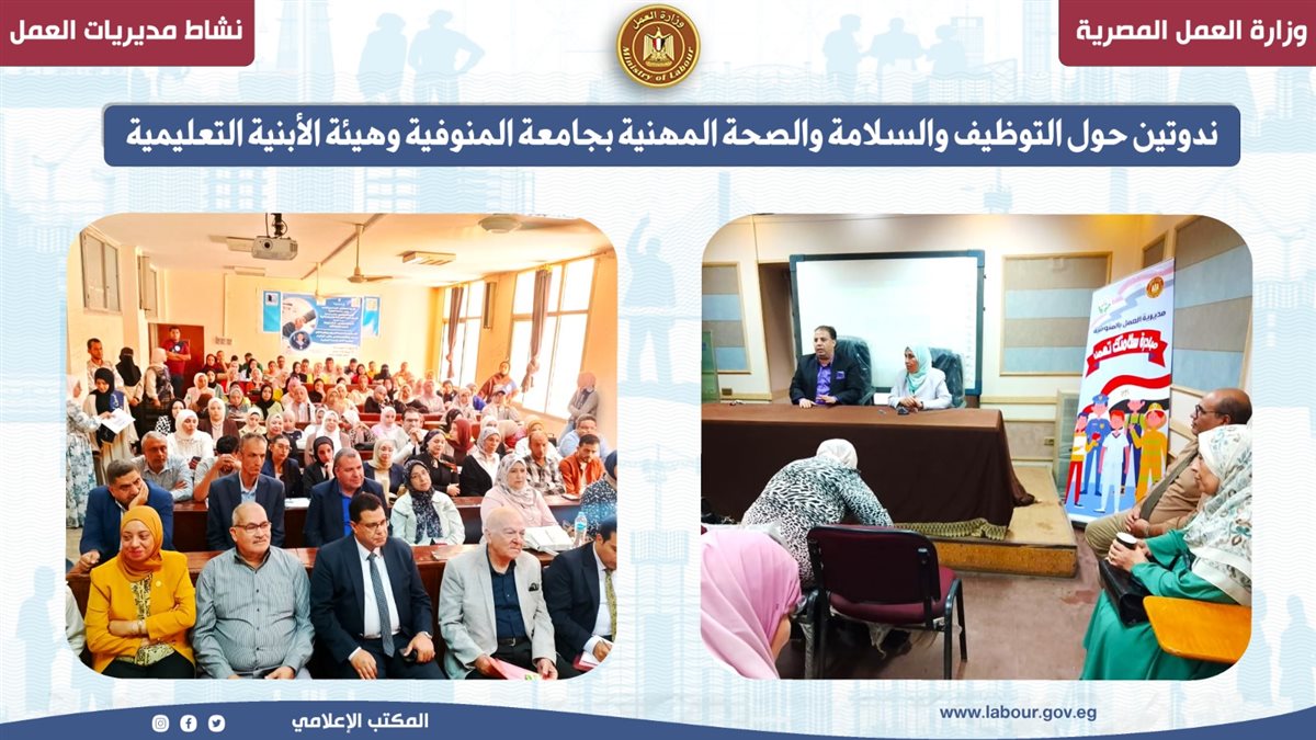 ندوتين حول التوظيف والسلامة والصحة المهنية بجامعة المنوفية وهيئة الأبنية التعليمية