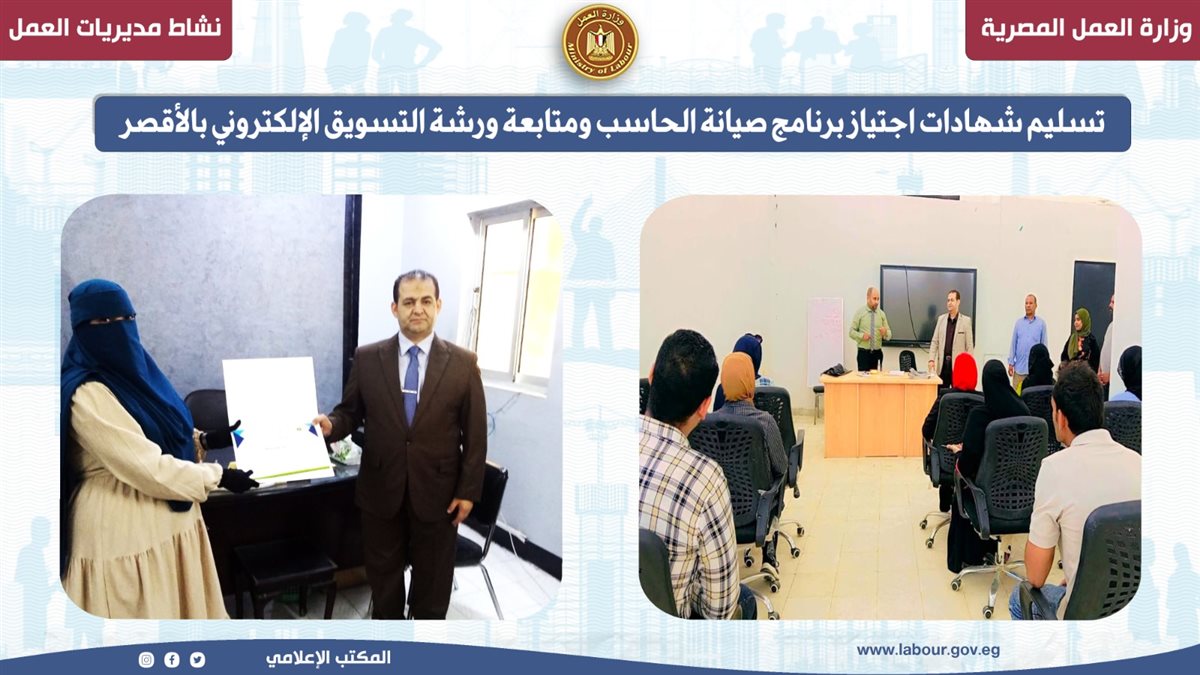 تسليم شهادات اجتياز برنامج صيانة الحاسب ومتابعة ورشة التسويق الإلكتروني بالأقصر