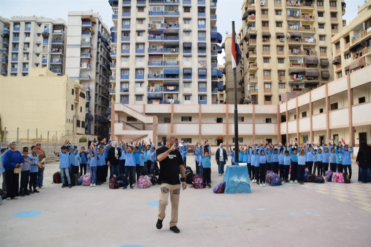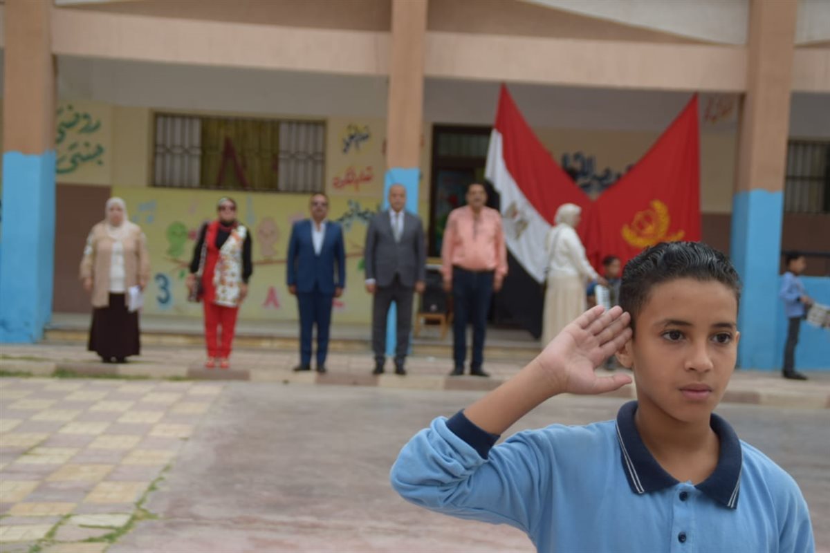 وكيل وزارة التعليم ببورسعيد يشارك طلاب عمر مكرم الابتدائية طابور الصباح