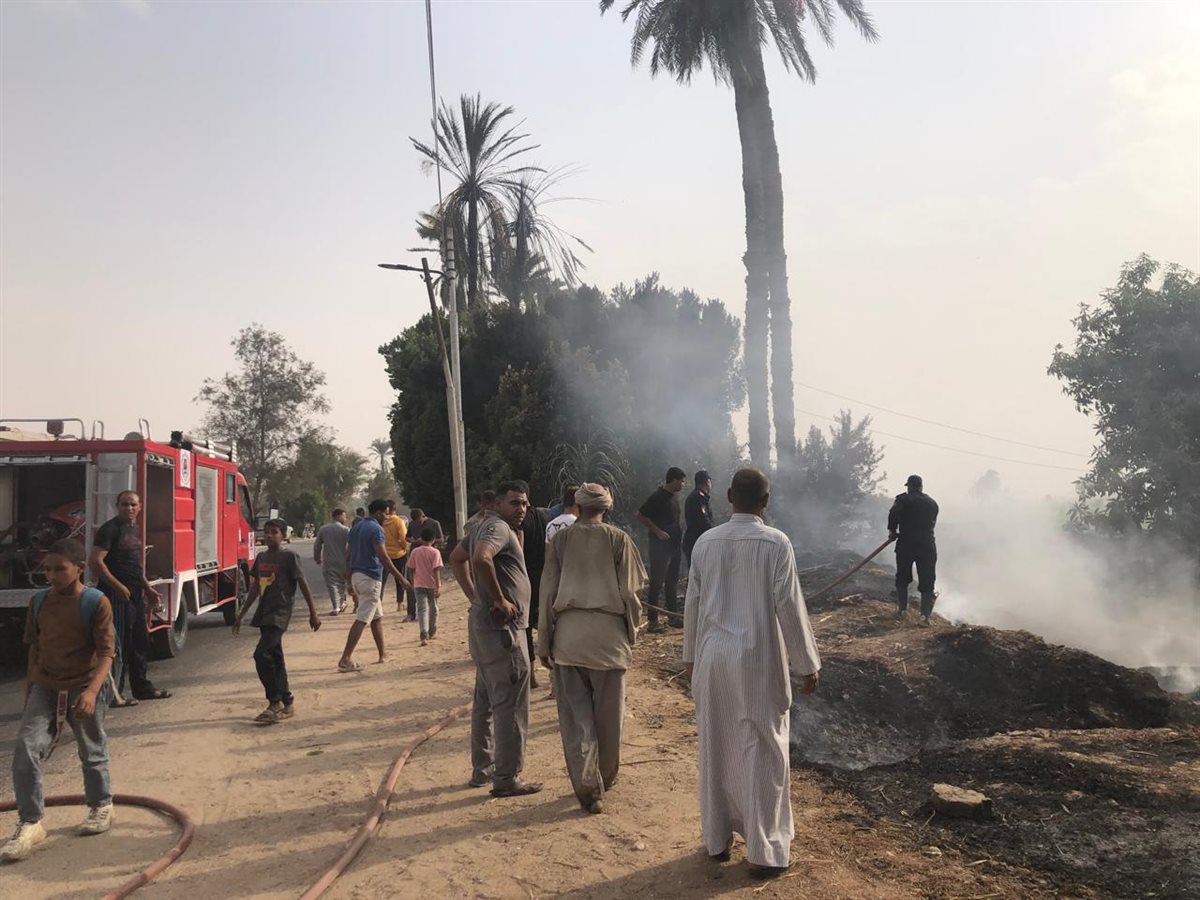 بالصور.. نشوب حريق في 4 أحواش مخصصة لتربية المواشي بسوهاج