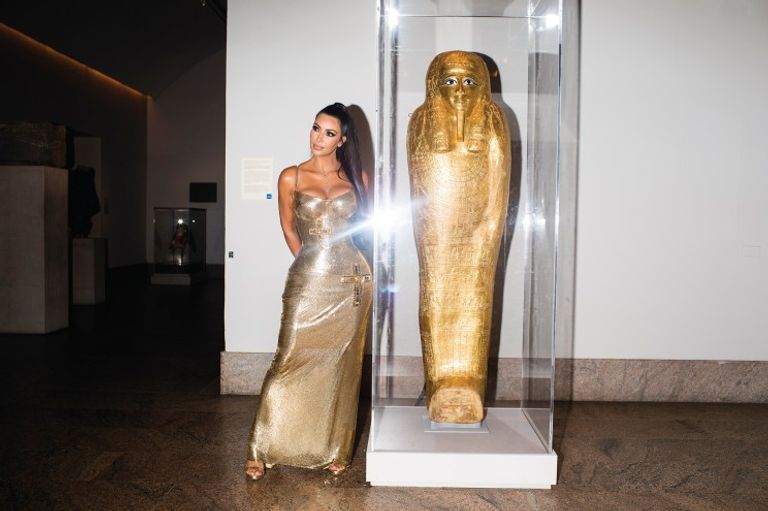 وتقول صحيفة "ديلى ميل" البريطانية إن كيم كارداشيان لم تكن تعرف وهى تقف بفستانها الذهبى لتلتقط صورة فى حفل الـ"ميت جلا" إلى جانب تابوت فرعونى ذهبى فى متحف الميتروبوليتان بنيويورك عام 2018 أن الصورة ستكون سببا فى حل لغز بيع التابوت الذهبى إلى المتحف من قبل لصوص مقابل 4 ملايين دولار باستخدام وثائق مزيفة.