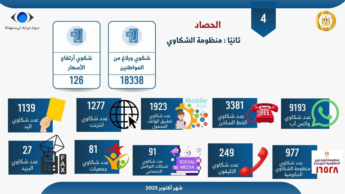 وفي هذا الإطار، أوضح السيد ابراهيم السجيني، أن مؤشرات الشكاوى خلال شهر أكتوبر تعكس حجم الجهود التي يبذلها الجهاز وفروعه الإقليمية في جميع المحافظات لحماية حقوق المواطنين.