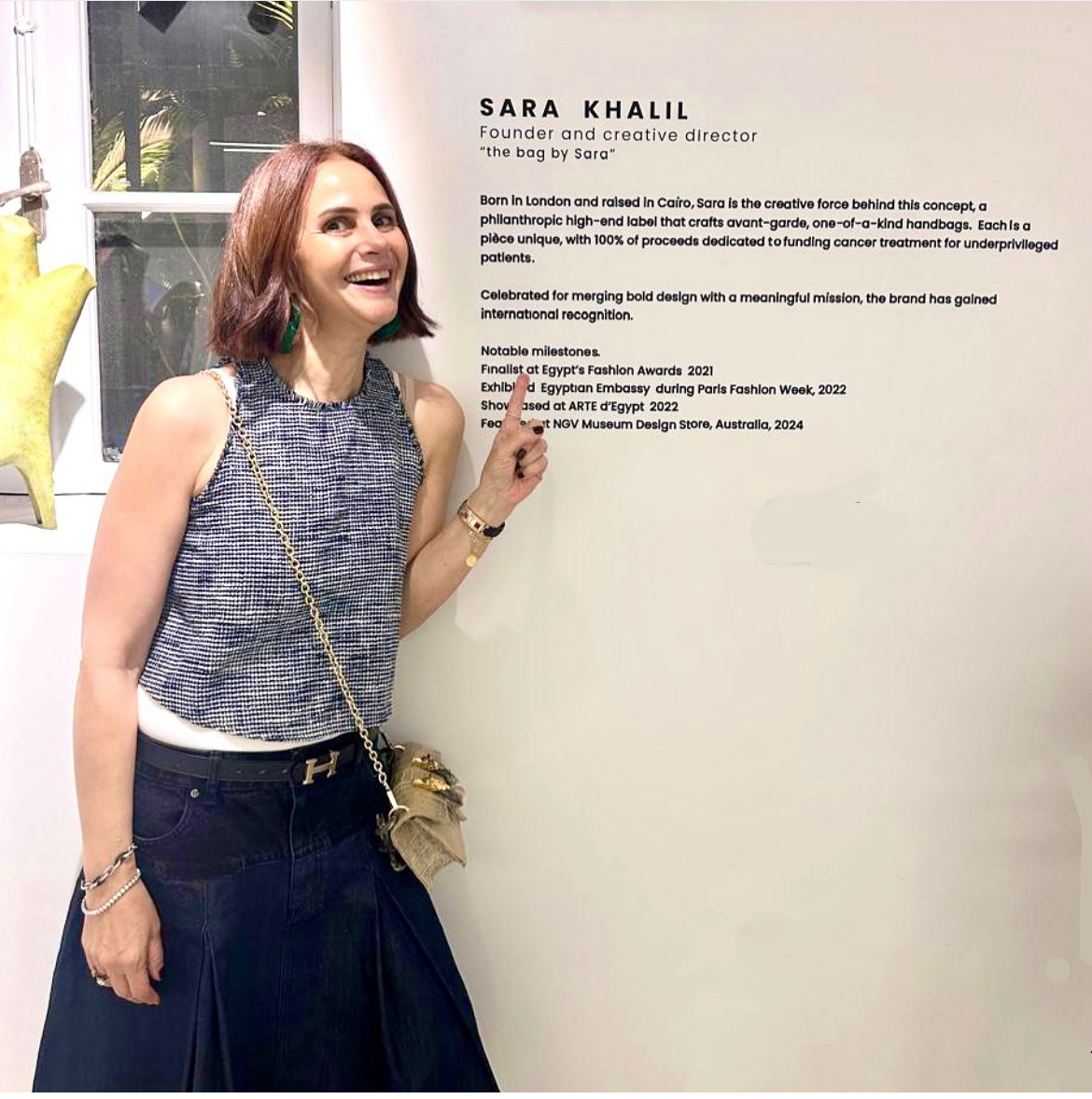 ولدت المصممة سارة في لندن ونشأت في القاهرة، وهي القوة الإبداعية وراء هذه العلامة التجارية الخيرية الراقية التي تُبدع حقائب يد فريدة من نوعها، كل منها قطعة فريدة، ويُخصص 100% من عائداتها لتمويل علاج السرطان للمرضى المحتاجين.