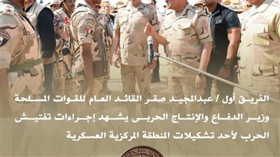 في وقت سابق، شهد الفريق أول عبدالمجيد صقر القائد العام للقوات المسلحة وزير الدفاع والإنتاج الحربى إجراءات تفتيش الحرب ورفع الكفاءة القتالية لأحد تشكيلات المنطقة المركزية العسكرية، بعد تطويرها وتحديثها وفقا لأحدث النظم القتالية ، وذلك بحضور الفريق أحمد خليفة رئيس أركان حرب القوات المسلحة وقادة الأفرع الرئيسية وعدد من قادة القوات المسلحة وعدد من طلبة الجامعات المصرية .