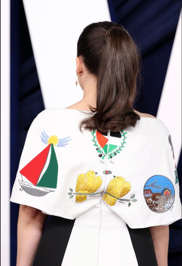 قبل الفعالية، التي أقيمت في الرابع من نوفمبر في بلازا بمدينة نيويورك، طلبت السيدة رايتشل من أطفال غزة إبداع أعمال فنية تروي قصصهم، ثم طُرِّزت صورهم على فستان مُعاد تدويره اشترته للفعالية، فهي تعرف المعنى الكامن وراء كل عمل فني، وتأمل أن تُسهم في الارتقاء بقصص هؤلاء الأطفال، وقصص الكثيرين غيرهم، من خلال ارتدائها الليلة.