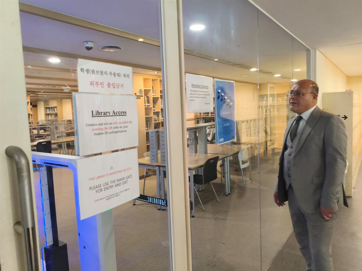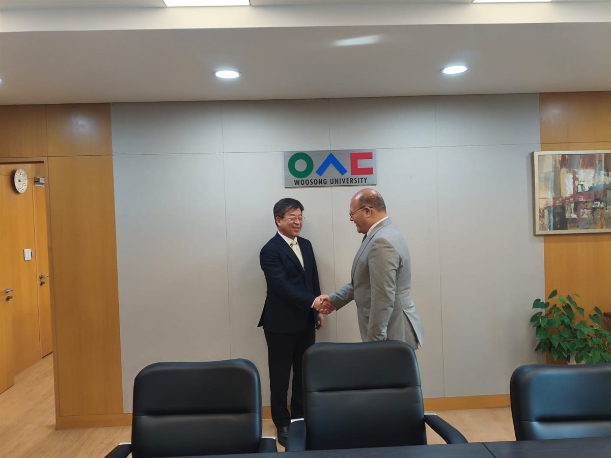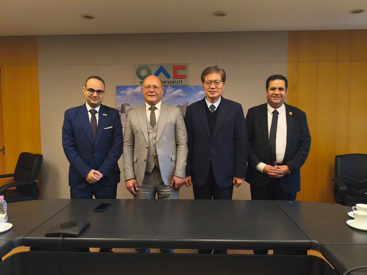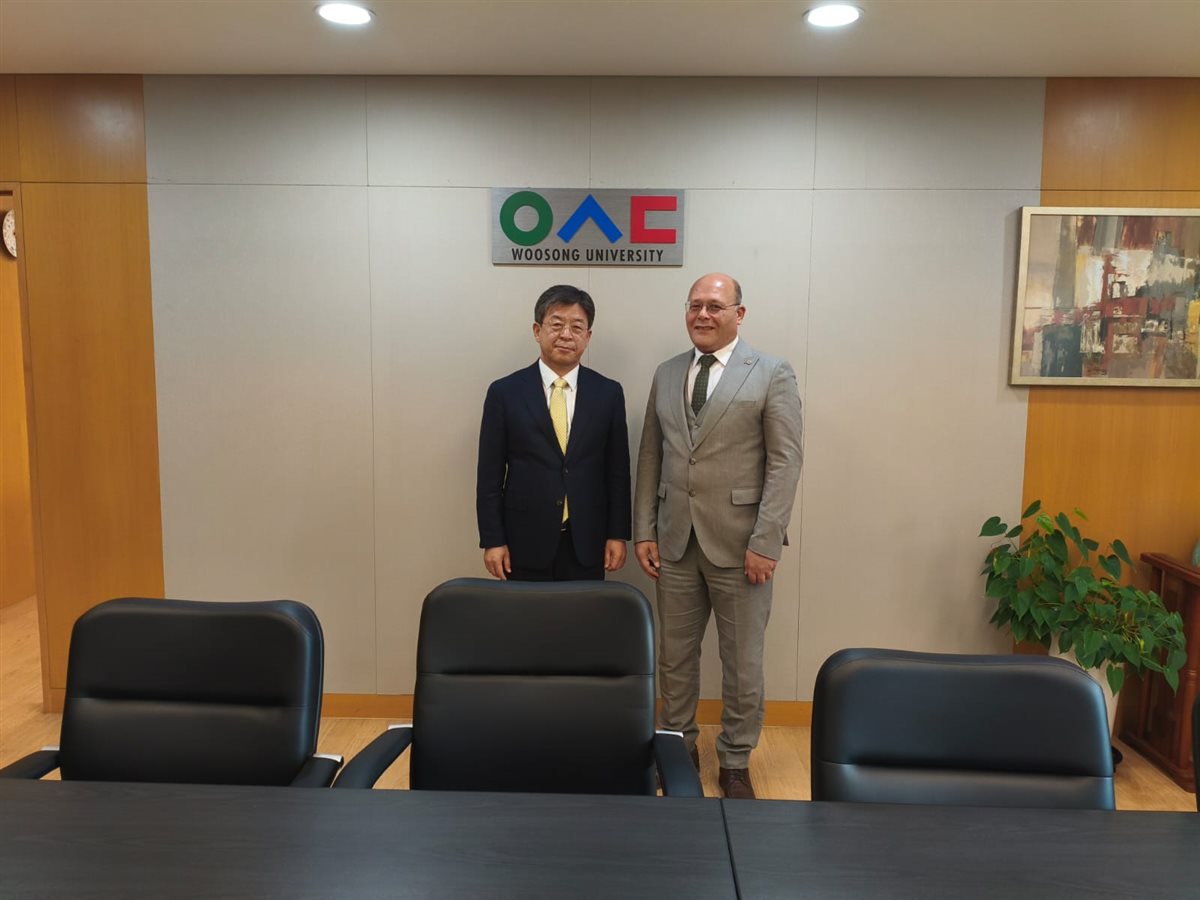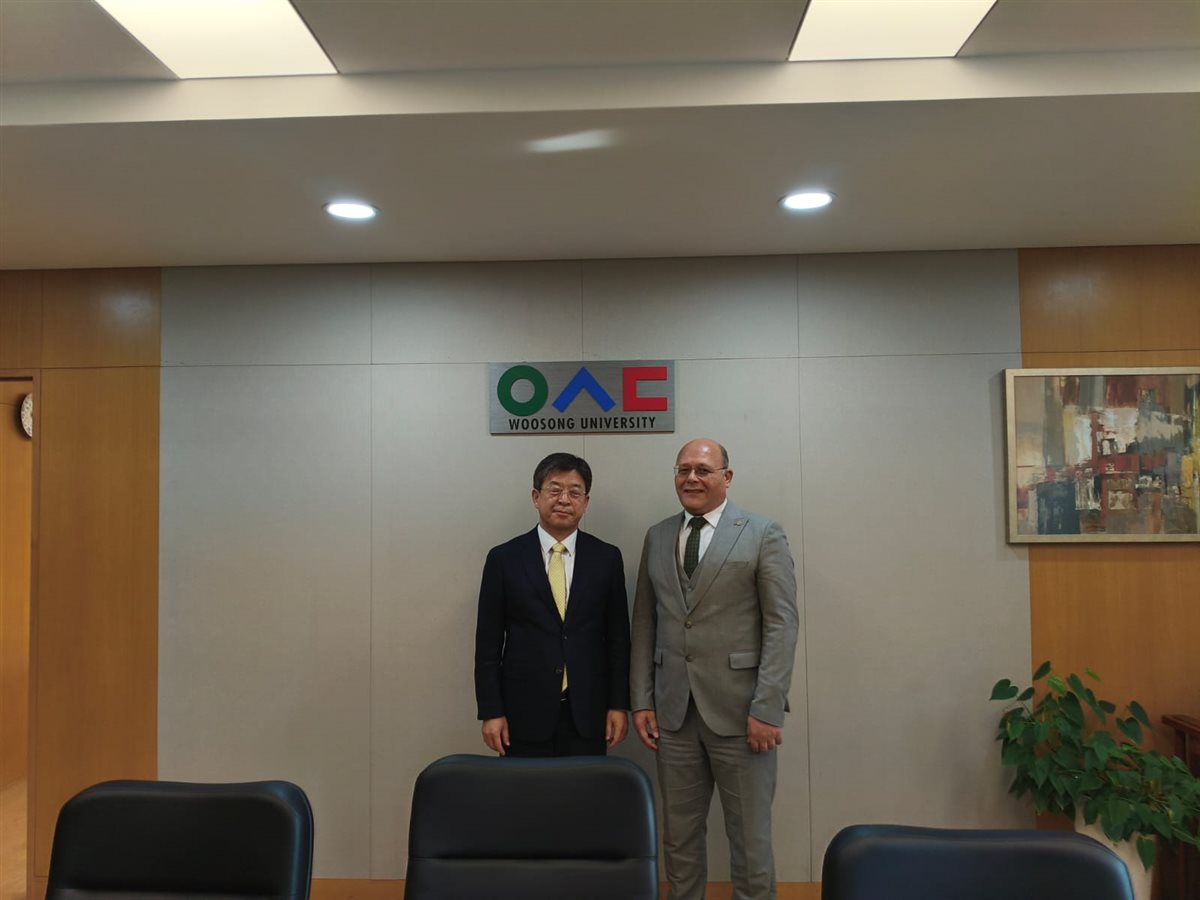 بمدينة Daejeon فى جمهورية كوريا الجنوبية، وعقد لقاء متميز مع الدكتور Ohio – الرئيس الفخرى لجامعة Woosong College، والدكتور Go-Whan Jin – رئيس جامعة Woosong، تم خلاله بحث سبل التعاون الأكاديمي والبحثي بين الجامعتين، والبدء بتشكيل فرق عمل من الجامعتين لوضع خطة تنفيذية للبرامج المقترحة والبدء بتفعيلها وذلك فى مجالات الذكاء الاصطناعي (Artificial Intelligence) وإدارة تصميم الجمال (Beauty Design Management)، بالإضافة إلى دراسة إنشاء فرع لجامعة Woosong داخل جامعة سوهاج، إلى جانب برامج تبادل أعضاء هيئة التدريس والطلاب والمشروعات البحثية المشتركة، وإطلاق دورات تدريبية تقدمها جامعة ووسونج فى مجال التجميل ومستحضرات التجميل؛ مقدما الشكر لرئيس جامعةWoosong على التعاون المتميز وحفاوة الاستقبال والترحيب الخاص.