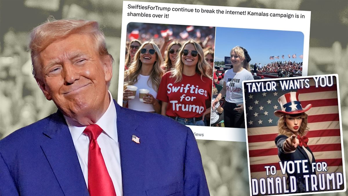 أعرب ترامب عن رأيه في سويفت خلال حملة انتخابات 2024 بعد تأييدها لمنافسته كامالا هاريس، وجاء ذلك بعد أن نشر الرئيس صورًا بالذكاء الاصطناعي لسويفت تبدو وكأنها تؤيده، وهو ما علقت عليه مغنية البوب: "لقد أثارت هذه الصور مخاوفي بشأن الذكاء الاصطناعي، ومخاطر نشر المعلومات المضللة. لقد أوصلتني إلى استنتاج مفاده أنني بحاجة إلى التحلي بشفافية تامة بشأن خططي الفعلية لهذه الانتخابات كناخبة. إن أبسط طريقة لمكافحة المعلومات المضللة هي الحقيقة".