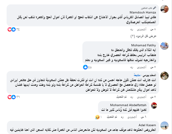 وأوضح المعتمر المصري أنَّ مصر والسعودية إخوّة وأن ما يربطهما أكبر من أي خلافات شخصية بين المواطنين، معربًا عن تقديره للمملكة العربية السعودية، والموقف المصري الوطني.