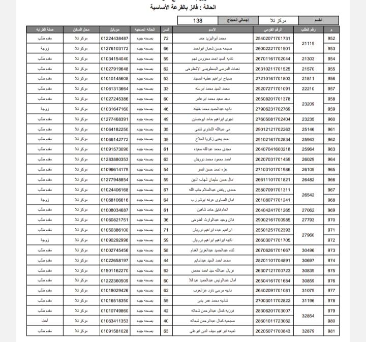 أسماء الفائزين في قرعة الحج بالمنوفية
