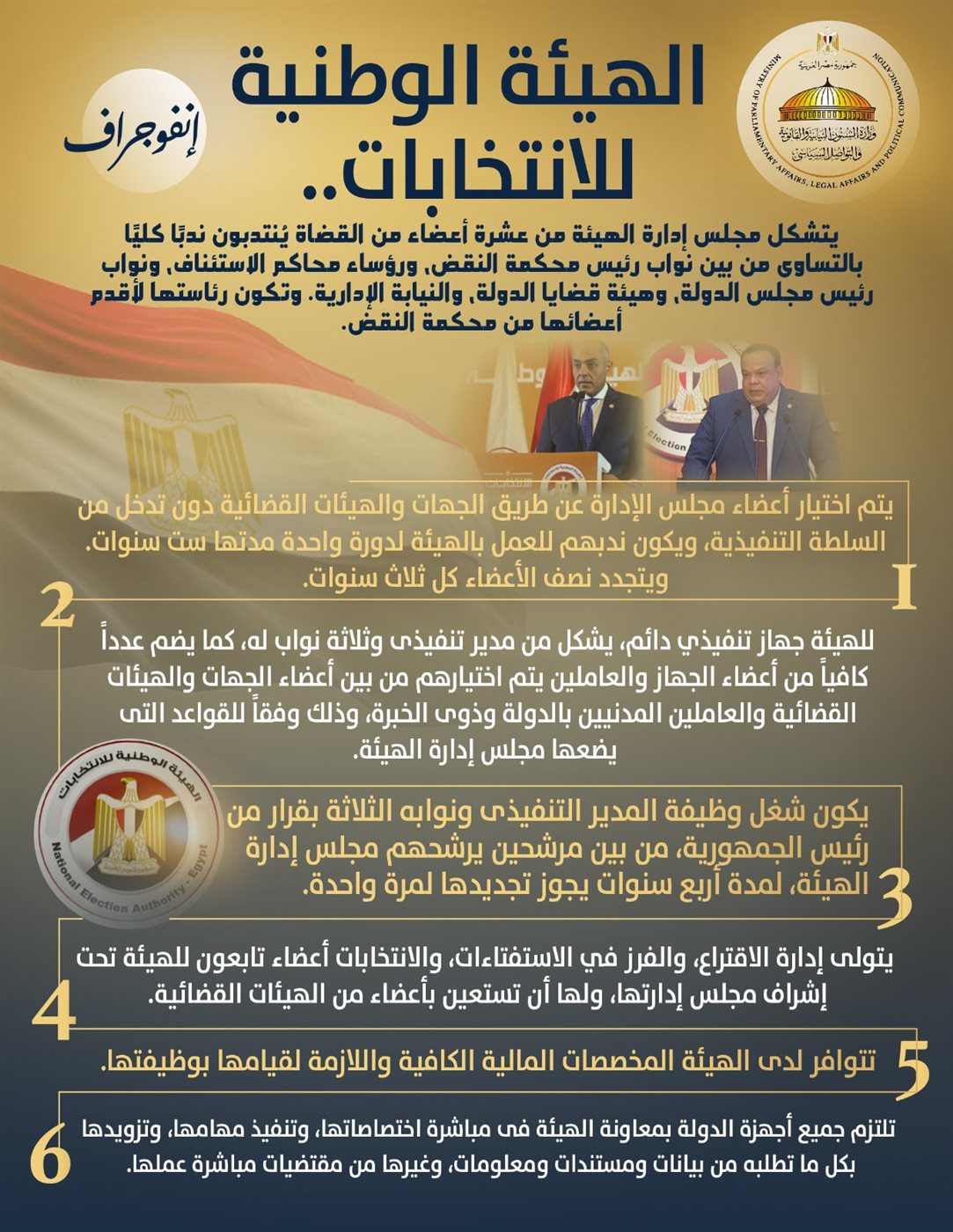وتقدم وزارة الشؤون النيابية والقانونية والتواصل السياسي، وجبة معلوماتية سياسية دسمة اليوم، تجيب فيها عن كل الأسئلة المتعلقة بالهيئة الوطنية للانتخابات، وتقدم فيها أسماء السادة الأعضاء، واختصاصات الهيئة وفقاً للدستور، واستقلاليتها، حتى يتسنى للمواطن معرفة من يدير العملية الانتخابية، فضلًا عن معلومات تتعلق بكل ما بخص الدوائر الانتخابية من حيث العدد والتوزيع الجغرافي، وكل ما يدور في ذهن المواطن بشأن هذه المعلومات.